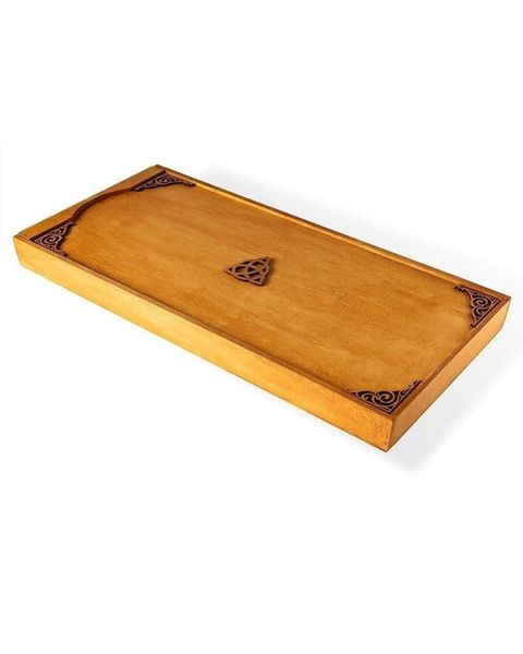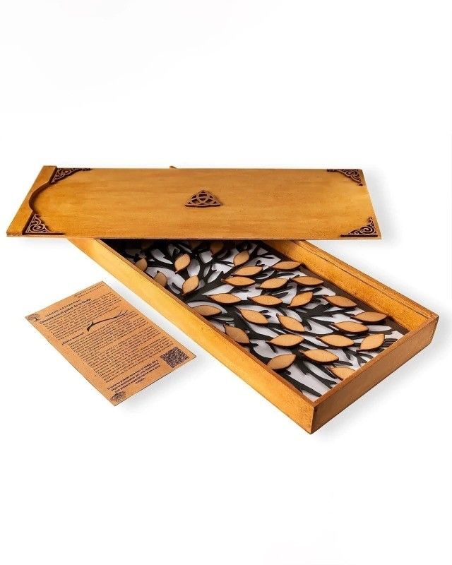 Viene en una bella caja de madera ornamentada con nudo celta TRISQUEL que representa el ciclo de nacimiento vida y muerte y bordes de delicada estética